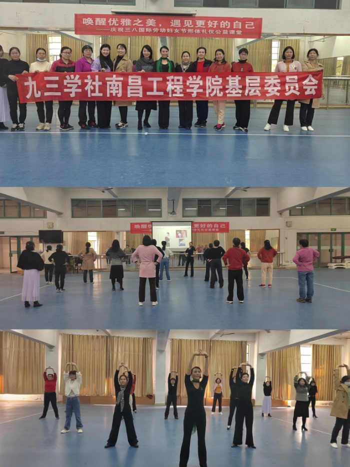 为庆祝第113个国际劳动妇女节,进一步丰富女职工的文化生活,提高女职工的生活品味,更好地展示新时代女性的巾帼风采,构建积极向上、和谐共进的文化氛围。九三学社南昌工程学院基层委员会于2023年3月14日下午在体育馆开展“唤醒优雅之美,遇见更好的自己”形体礼仪公益课堂体验活动。