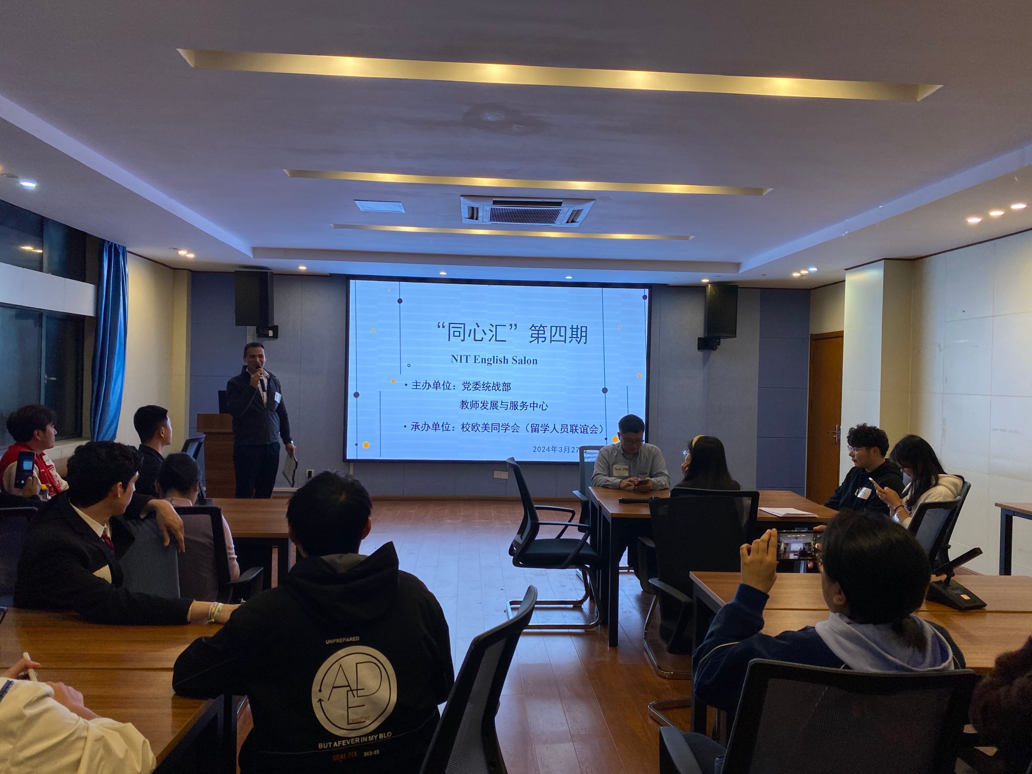 3月28日晚,由党委统战部、教师发展与服务中心主办,校欧美同学会(留学人员联谊会)承办的“同心汇”“NIT English Salon” 第4期英语活动在逸夫楼B400举行。来自各学院的二十余名师生和部分外籍教师参加。
