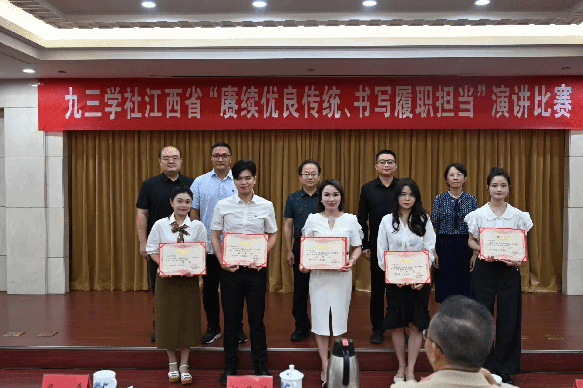 近日,九三学社江西省委会精心筹备并举办了“赓续优良传统、书写履职担当”主题演讲比赛。全省各级组织热烈响应,各社务联动组经过初赛的严格选拔,最终推选出 14 名优秀代表参与角逐。九三学社南昌工程学院基层委员会任燕老师在众多实力强劲的参赛选手中斩露头角荣获二等奖。