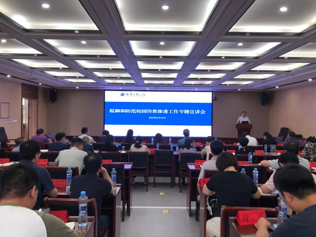 会上,欧阳子龙传达学习了中央统一战线工作领导小组有关会议精神和全省高校统战工作会议、江西省委统战部有关会议精神,并就抵御和防范校园传教渗透工作进行专题宣讲。(文/张存岩 图/郭宗源 张存岩)