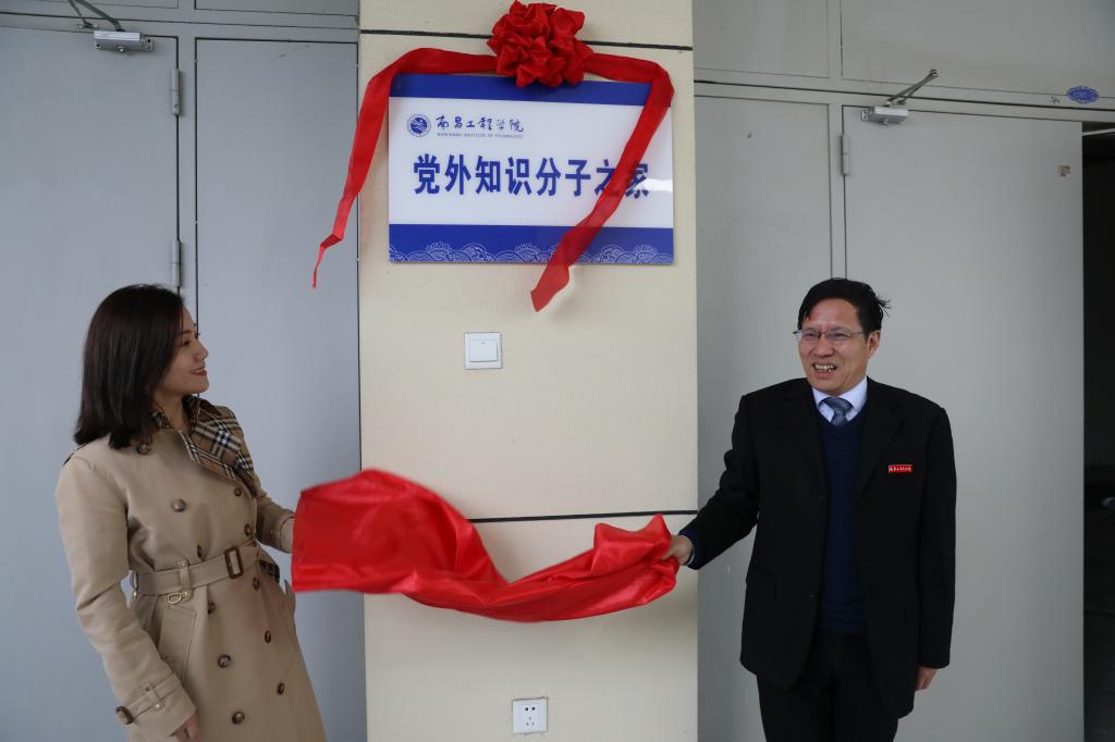 汪胜前与熊丽平为“党外知识分子之家揭牌”