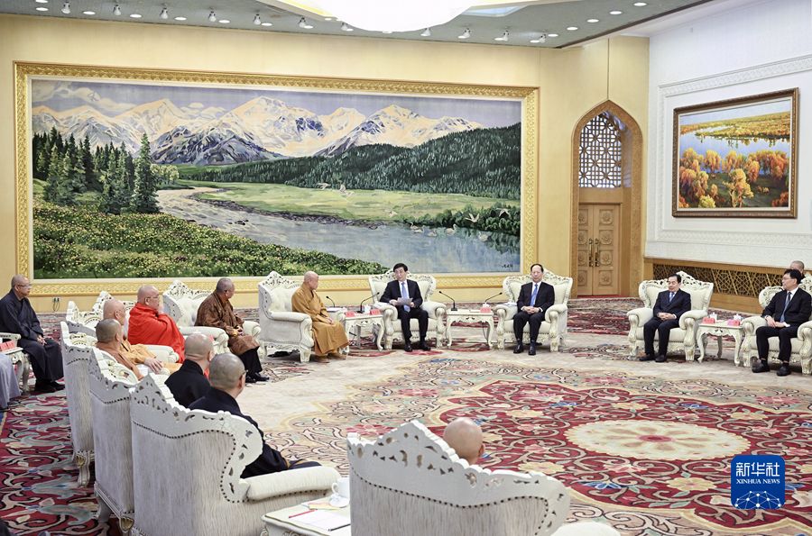 王沪宁表示,在全面建设社会主义现代化国家新征程上,中国佛教界要坚持思想政治引领正确方向,牢牢把握团结奋斗的时代要求,引导佛教界人士和信教群众继承和弘扬爱国优良传统,不断增进对伟大祖国、中华民族、中华文化、中国共产党、中国特色社会主义的认同,铸牢中华民族共同体意识。要深入推进我国佛教中国化,自觉在教义思想中融入社会主义核心价值观和中华优秀传统文化。要坚持全面从严治教,引导教职人员遵纪守法、遵规守戒、正信正行。要着力加强人才培养,建设一支政治上靠得住、宗教上有造诣、品德上能服众、关键时起作用的教职人员队伍。要积极推动佛教对外友好交流,讲好中国宗教故事。
