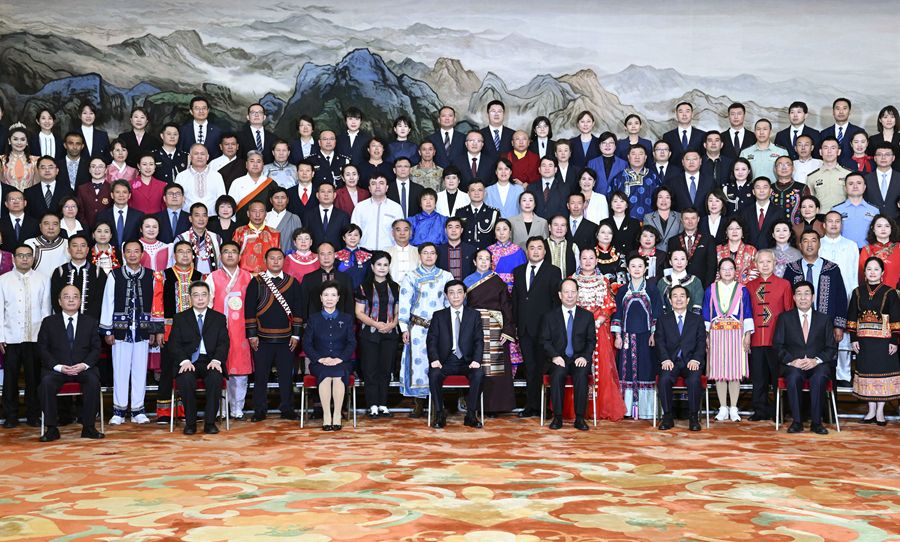9月29日,中共中央政治局常委、全国政协主席王沪宁在北京会见全国少数民族参观团。新华社记者 张领 摄